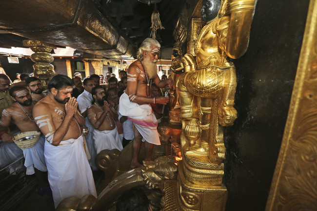 인도 힌두교의 대표적 성지 사바리말라 사원에서 지난해 11월 주지승이 성소를 개방하는 의식을 하고 있는 모습.