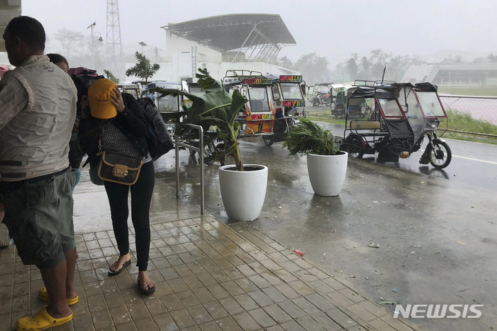 [시아르가오=AP/뉴시스] 16일(현지시간) 필리핀 남부 수리가오 델 노르테주 시아르가오 다파타운에서 주민들이 제22호 태풍 '라이'로 인한 강풍을 피하고 있다. 필리핀 중남부에 태풍 '라이'가 접근하면서 당국은 주민들에게 대피할 것을 권고하면서 동시에 오미크론 변이 발생으로 사람이 많은 곳을 피하라고 조언했다. 2021.12.16.