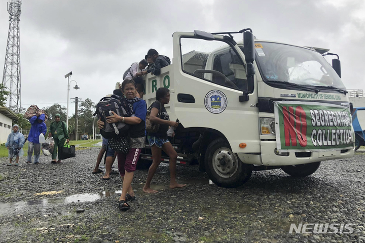 [마닐라(필리핀)=AP/뉴시스]유세진 기자 = 필리핀에서 오미크론 변이 첫 감염자 발생으로 당국이 많은 사람들이 밀집하는 것을 피하라고 경고한 가운데 강력한 태풍이 접근하면서 필리핀 남부와 중부에서 수만명이 안전한 곳을 찾아 대피하고 있다.