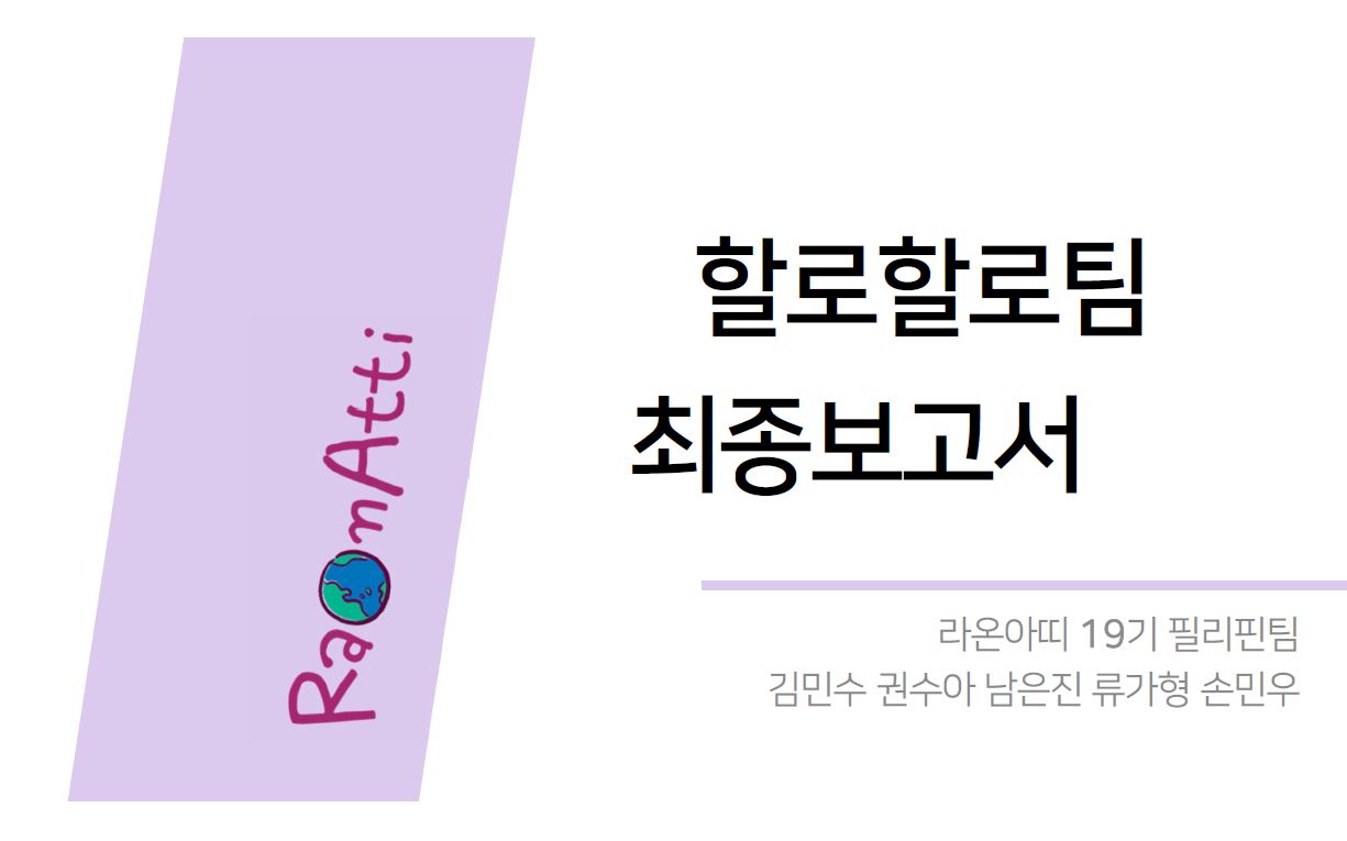 19기 필리핀팀 최종 국제자원활동보고서를 공유합니다 :)