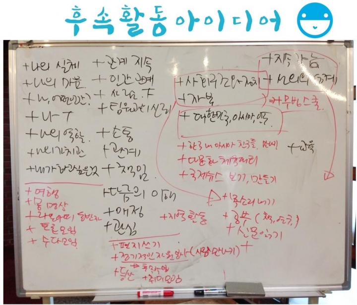 할 수 있는 일이 무엇일지를 논의해 보는 아이디어 시간에, 다양한 생각이 나오게 되었습니다.
