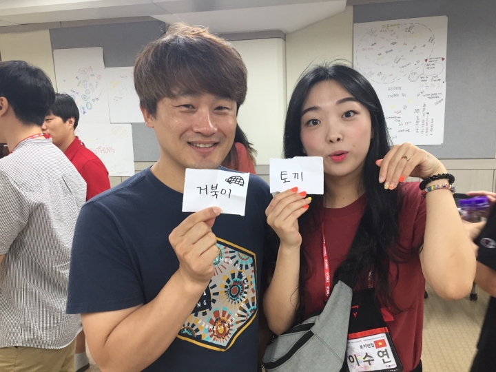 동화제목, 영화제목, 노래제목 등등 매일 다른 주제로 뽑은 2명 혹은 3명의 짝꿍들끼리