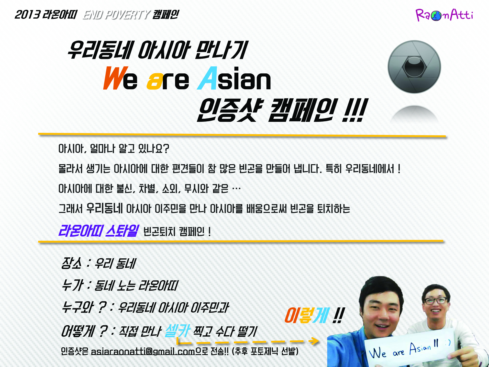 +그리고 찍은 셀카 인증샷들은 asiaraonatti@gmail.com으로 보내는!!
