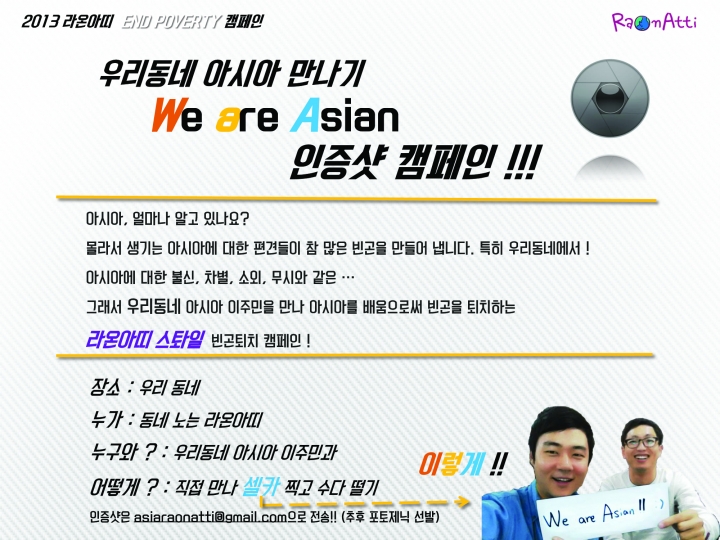 특히, 국내의 아시아 이주민에 대한 사회 문제들은 많은 부분이 편견이나 불신, 무지 등에서 오는 것이기에 새로운 시각으로 아시아를 보는 기회를 제공하는 캠페인을 통해 ‘세계 빈곤퇴치의 날’에 함께 합니다.