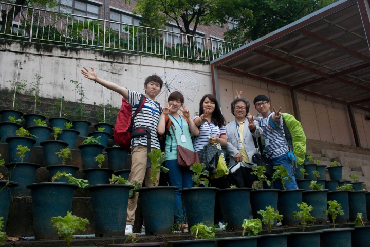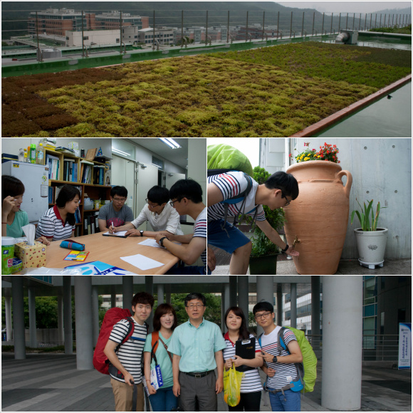 우리가 첫 번째로 방문한 곳은 ‘서울대 빗물연구센터’다. 때마침 내리던 비를 뚫고 가 서울대 캠퍼스에서 만난 한무영 교수님. 그러나 교수님 일정 상 아쉽게도 예정된 인터뷰를 진행할 수 없었다. 다급하게 건 낸 “왜 하필 빗물 연구를 시작했나요?”라는 질문에 교수님은 “everybody happy”란 단어 한마디를 던지셨다. 이어서 한 교수님은 우리에게 되물으셨다. “학생들의 공은 모두를 행복하게 해주나요?” 이 질문에 대해 곰곰이 생각해봤다. 수학, 기계, 법학, 행정 등 우리들 중 어떤 전공도 모두의 행복을 위한 학문은 아니었다. 한 교수님의 빗물 연구의 본질은 바로 이 질문들에 있었다. 모두의 행복. 공짜 자원인 빗물을 통해 모두의 행복을 이룰 수 있다는 믿음으로 연구를 진행해오셨다. 옥상정원, 빗물저금통 그리고 알지도 못하는 우리와의 인터뷰 모두 이 믿음을 퍼뜨리기 위해 하신 일이리라…