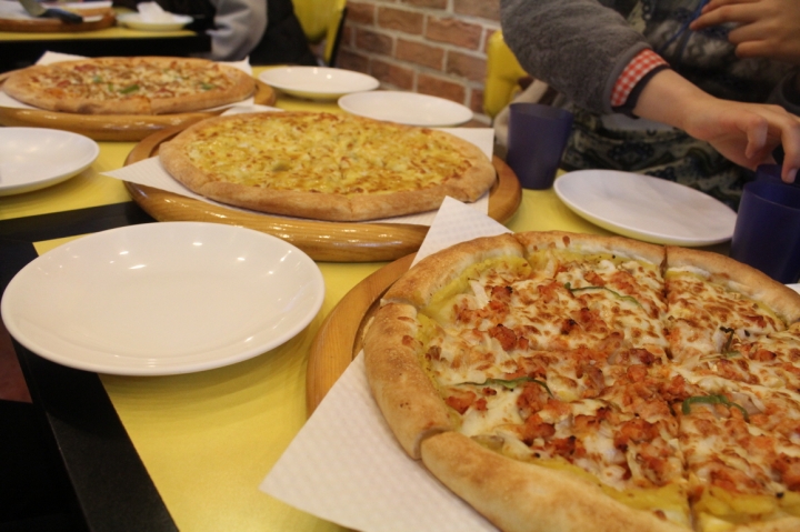 피자 3판을 시켜서 놓고 허겁지겁 먹기 시작했습니다 :)