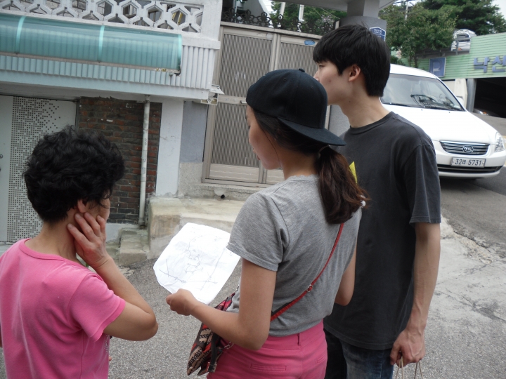 미리 준비해 둔 창신동 지도를 보면서 창신동을 찾아가는 샨디팀!