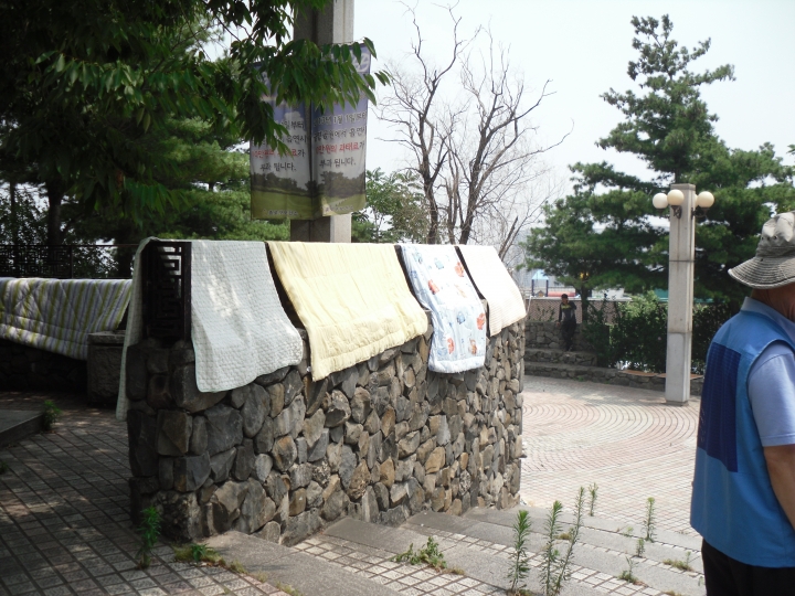 그런 희망을 안고 계속 위로 올라가다보니 이불이 널려 있는 곳을 발견했어요!