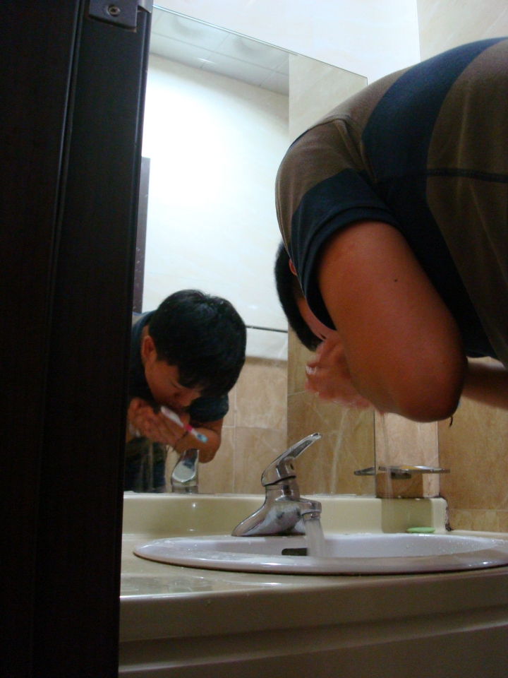 양치컵은 물론 물은 철철틀어놓고 입을 행구고 있습니다