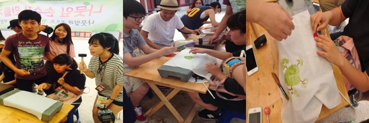 - 수원화성으로 지역탐방 갔다가 손수건 만들기를 체험했습니다! 면으로 된 천에 나뭇잎이나 꽃잎으로 놓고 두들겨 물들이는 방식인데, 만들면서 들고 다니고 싶다는 생각이 확 들더라구요. 이 외에도 얼룩이 묻거나 디자인이 마음에 안 들어 안 입는 옷에 패브릭 팬으로 이쁘게 꾸미는 프로그램에도 함께 했었는데 ‘자원을 함부로 버리면 안 돼’같은 무거운 마음이 아니라 ‘다시 입고 싶다’는 신나는 마음이 들더라구요.