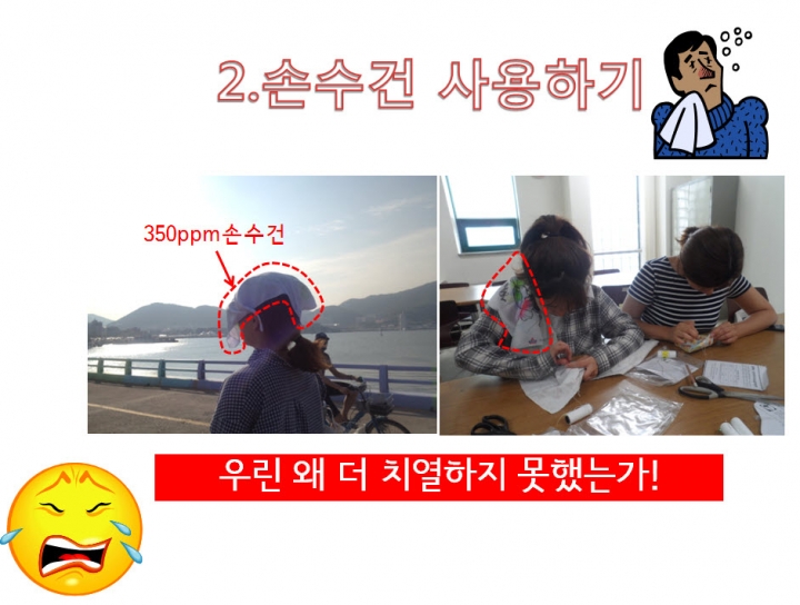 네...문제의 손수건 사용하기 입니다. 사실  저희 팀은 사실 손수건을 많이 사용하지 못했던 것 같습니다. (반성반성눈물눈물)