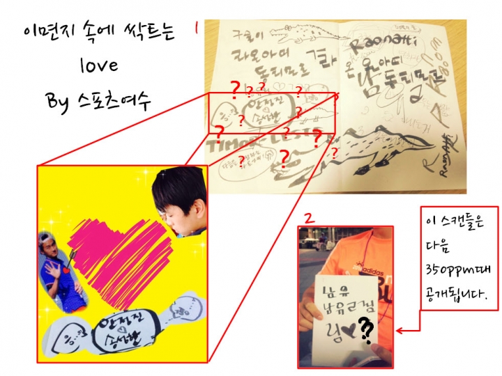 오가는 낙서 속 드러나는 그들의 마음...heart 이면지 노트 덕분에 즐거웠던 딜리팀이었습니다.