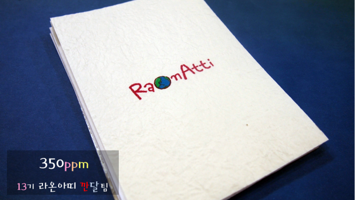 재생노트를 만들어서 350ppm을 알리는 것을 통해 단순히 저희 깐달팀만의 이면지 사용이 아닌