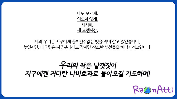 비록 몇백원밖에 안되지만 우리는 작은 날개짓을 하찮게 여기지 않는 아시아적 감수성을 가진 라온아띠들이니까요 !