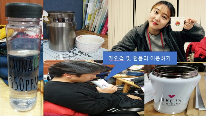 다섯번째 종이컵 사용을 안하며 개인컵과 텀블러를 가지고 다니며 이용하기