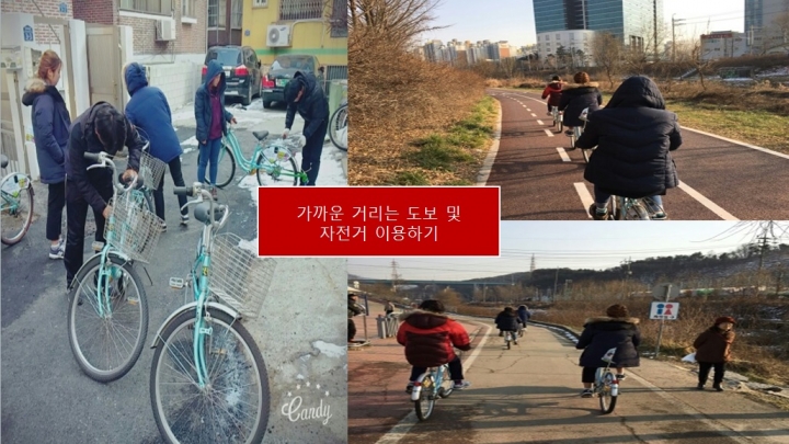 여덜번째 어딜 이동하는 일이 생기면 대도록 가까운 거리는 도보나 자전거를 이용하여 이동하였습니다.
