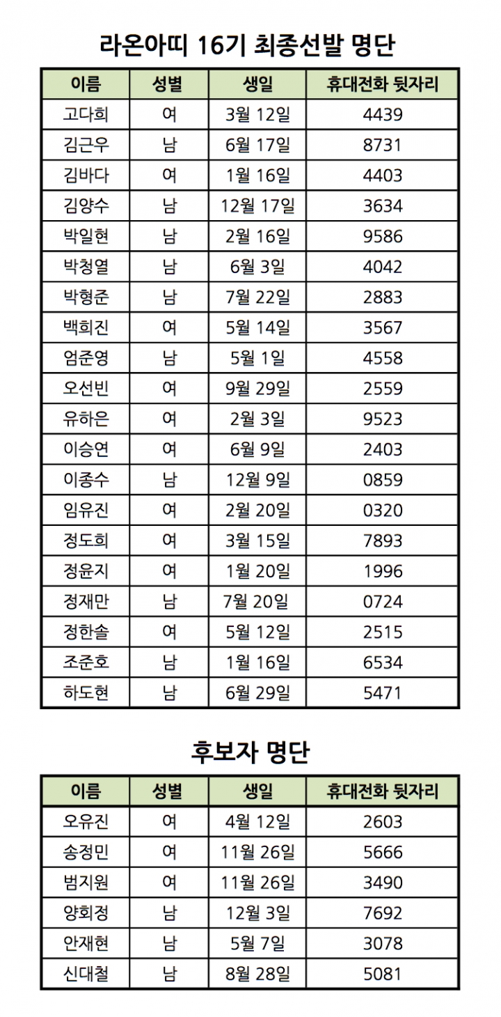 <2016년 KB국민은행-YMCA 대학생해외봉사단 ‘라온아띠 16기’ 최종 선발 단원 발표>