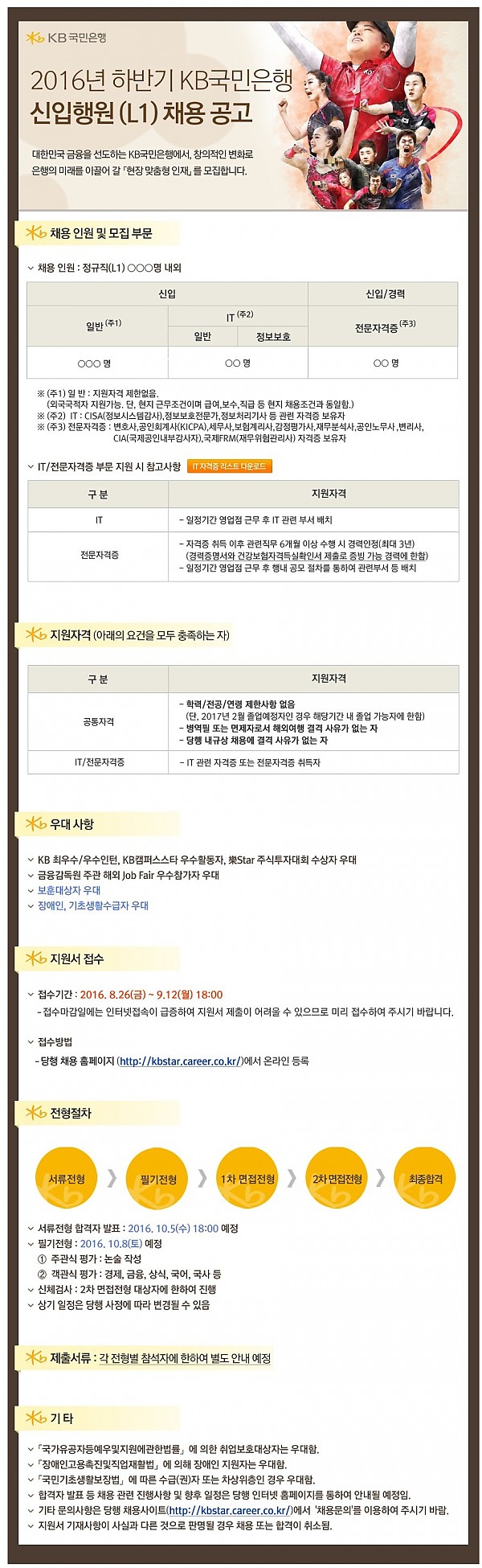[공지] KB국민은행 하반기 신입행원 채용 공고