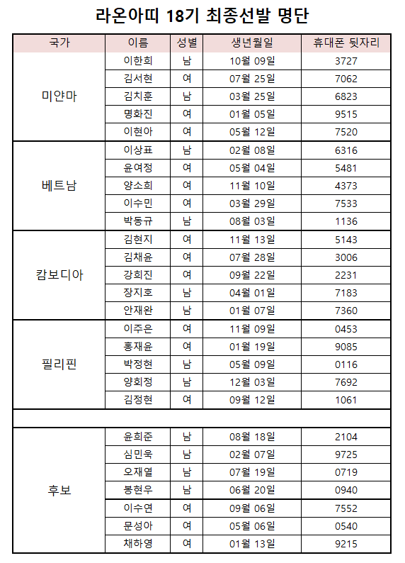 2018년 KB국민은행-YMCA 대학생해외봉사단 라온아띠 18기