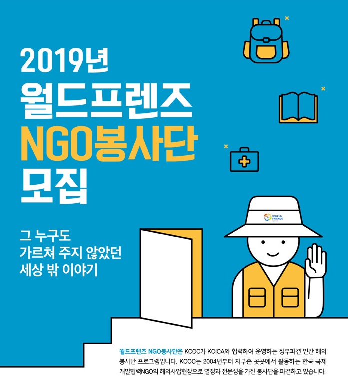 이 프로그램은 국제개발협력민간협의회(KCOC)가 주관하고, 한국국제협력단(KOICA)이 후원하는 민간단체해외봉사단 프로그램으로 한국YMCA전국연맹이 진행합니다.